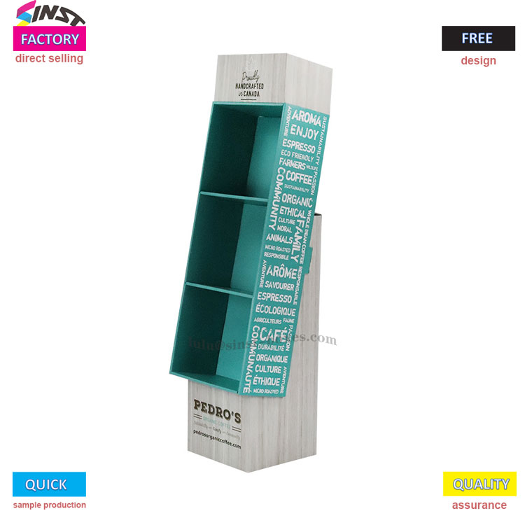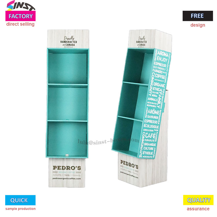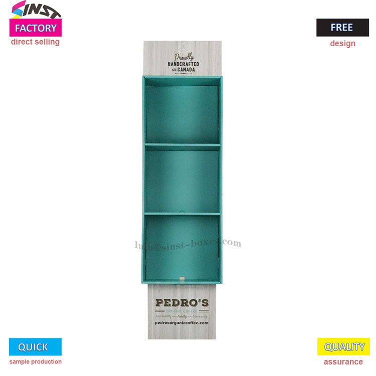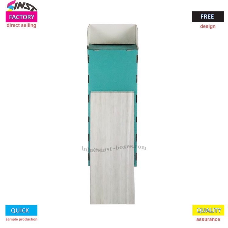 ชั้นวางจอแสดงผลลูกฟูกสเตชันเนอรีนี้ส่วนใหญ่จะใช้เพื่อแสดงรายการสเตชันเนอรีต่างๆ ตัวเครื่องโดยรวมเป็นรูปสี่เหลี่ยมผืนผ้าและทำจากไม้เนื้ออ่อนหรือวัสดุลายไม้เลียนแบบสีขาว ซึ่งดูสดชื่นและมีพื้นผิว ช่องเก็บของแบบเปิด 3 ช่องได้รับการออกแบบมาเป็นพิเศษที่ด้านหน้า โดยมีสีเขียวหรือฟ้าเขียว ซึ่งเหมาะสำหรับการจัดเรียงและจัดเก็บเครื่องเขียน ไม่ว่าจะเป็นหนังสือ สมุดโน๊ตต่างๆ หรือปากกาสไตล์ต่างๆ ก็สามารถวางไว้ด้านในได้อย่างปลอดภัย นอกจากนี้ ชั้นวางจอแสดงผลนี้มีโครงสร้างสี่เหลี่ยมคางหมูที่ลาดเอียงไปข้างหน้าเล็กน้อย ทำให้ง่ายต่อการเข้าถึงและวางสิ่งของต่างๆ บนชั้นวางโดยไม่ต้องใช้ความพยายามมากนัก