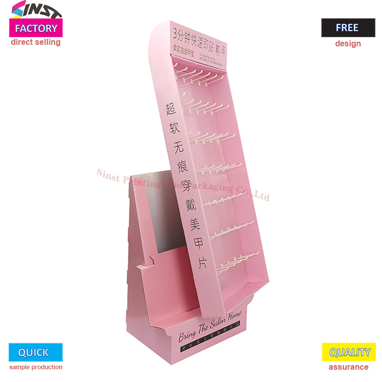 แท่นโชว์เล็บกระดาษแข็ง แท่นโชว์ตะขอทำจากวัสดุกระดาษแข็งลูกฟูกที่มีความแข็งแรงสูง และทนทานในการใช้งานและการสึกหรอ ใช้เทคโนโลยีการพิมพ์ที่มีความละเอียดสูง และกันความชื้น กันเชื้อรา และป้องกันการอัดขึ้นรูป