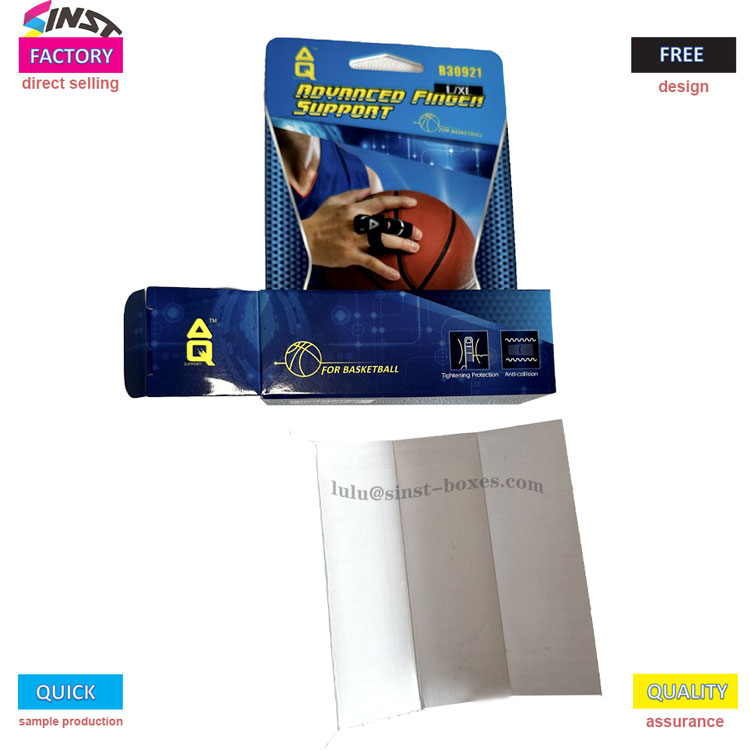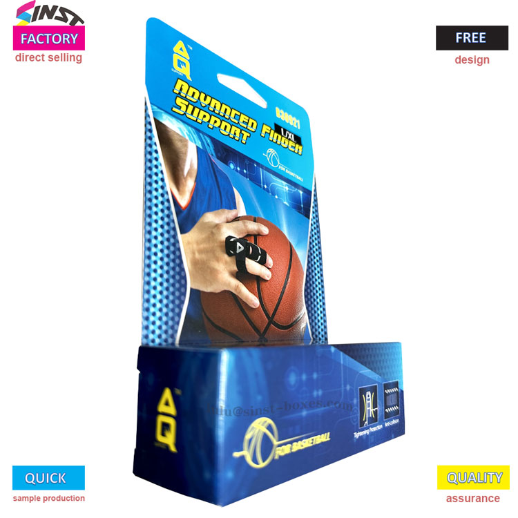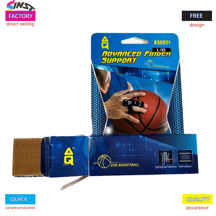 กล่องใส่บัตรสำหรับเล่นบาสเก็ตบอลรุ่นนี้ออกแบบมาโดยเฉพาะสำหรับผู้เล่นบาสเก็ตบอลเพื่อ "ปกป้อง" อุปกรณ์ป้องกันจากภายนอกสู่ภายใน กล่องการ์ด Finger sleeve ส่วนใหญ่จะเป็นสีฟ้าคลาสสิก พร้อมด้วยภาพลักษณ์แบบไดนามิกของผู้เล่นบาสเก็ตบอลที่กำลังถือลูกบอลโดยมีเปลนิ้วสีดำพิมพ์อยู่ด้านหน้า ตัวอักษรสีเหลือง "ADVANCED FINGER SUPPORT" ที่ด้านบนบ่งบอกถึงคำถามโดยตรง และแบบจำลองจะถูกทำเครื่องหมายไว้ที่มุมขวาบน การระบุขนาดด้านล่างมีความชัดเจน และคุณสามารถระบุความต้องการรูปร่างมือของคุณได้อย่างรวดเร็ว ด้านข้างและด้านล่างเน้นย้ำถึงฟังก์ชันของ "FOR BASKETBALL", "Tightening Protection" และ "Anti collision" ซ้ำๆ และคุณลักษณะด้านกีฬาก็เต็มเปี่ยม