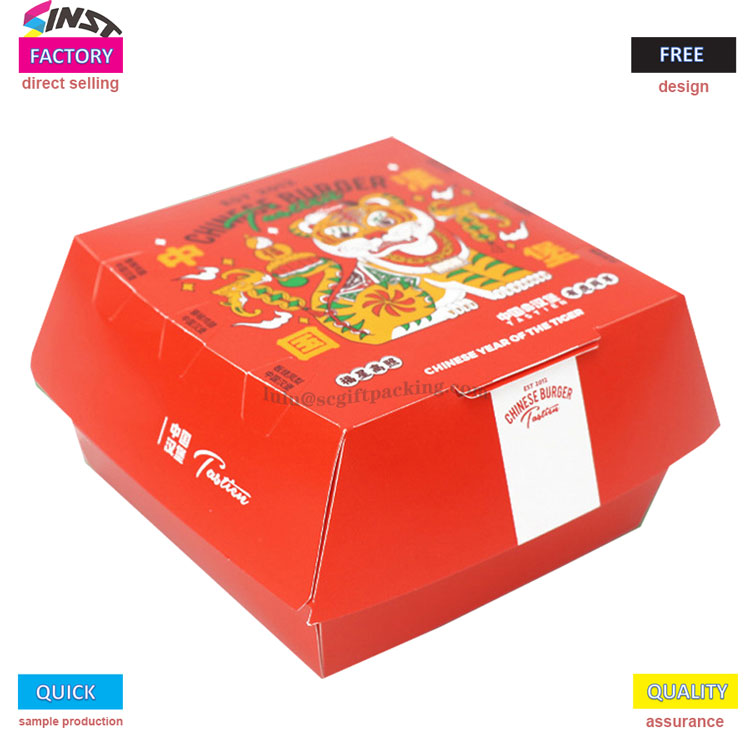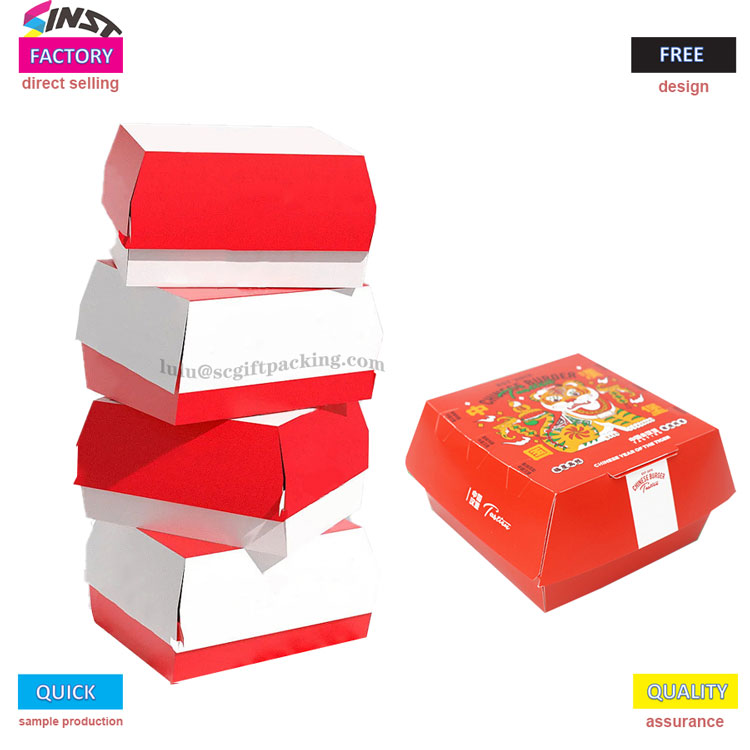 กล่องกระดาษบรรจุภัณฑ์อาหารแฮมเบอร์เกอร์ (หมายเลขอ้างอิง: CBW-476F)