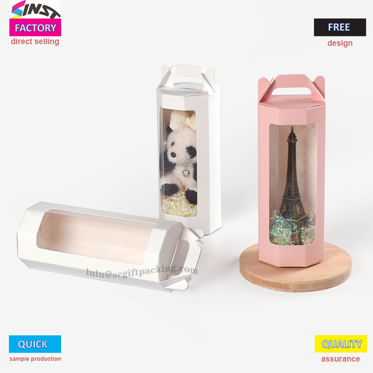 กล่องของขวัญหน้าต่างสีชมพูอ่อนหรูหรานี้เหมาะสำหรับการถือตุ๊กตาและดอกไม้ แนวโน้มของการส่งดอกไม้ในกล่องที่มีเสน่ห์ทำให้ทั้งผู้ให้และผู้รับเพิ่มความซับซ้อนให้กับการจัดดอกไม้แบบดั้งเดิม กล่องหน้าต่างดอกไม้มีรูปร่างขนาดและการออกแบบที่หลากหลายผสมดอกไม้กับกล่องของขวัญที่สวยงาม ไม่เหมือนกับปิดทั่วไปกล่องของขวัญหน้าต่างพับดอกไม้คุณลักษณะเหล่านี้มีหน้าต่างโปร่งใสที่ฝังอยู่ด้านหน้าครอบคลุมสองในสามของพื้นผิวของกล่อง ผ่านกระดาษแก้วโครงร่างของดอกไม้ภายในสามารถมองเห็นได้อย่างชัดเจน - นี่คือ "กล่องของขวัญหน้าต่างดอกไม้" ที่ได้รับความนิยมอย่างเงียบ ๆ ในฤดูใบไม้ร่วงและฤดูหนาวนี้