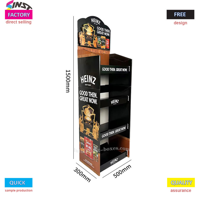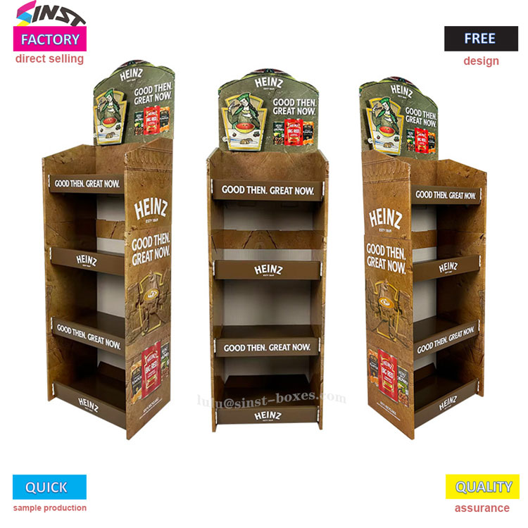 ชั้นวางกระดาษแข็งซอสมะเขือเทศมีศูนย์กลางอยู่ที่ "การปรากฏแบรนด์ที่ชัดเจน+การแสดงผลที่ใช้งานได้จริง" ออกแบบมาเป็นพิเศษสำหรับซอสมะเขือเทศ และเหมาะสำหรับร้านค้าปลีก เช่น ซูเปอร์มาร์เก็ตและร้านสะดวกซื้อ ที่วางโชว์ซอสมะเขือเทศมีพื้นที่จัดเก็บสี่ชั้นสำหรับการจัดวางซอสมะเขือเทศตามข้อกำหนดเฉพาะที่แตกต่างกันหลายชั้น ตั้งแต่ขวดมาตรฐานไปจนถึงผลิตภัณฑ์ทดลองบรรจุภัณฑ์ขนาดเล็ก สามารถ "วางในตำแหน่งที่เกี่ยวข้อง" ได้อย่างราบรื่นและไม่ติดขัด